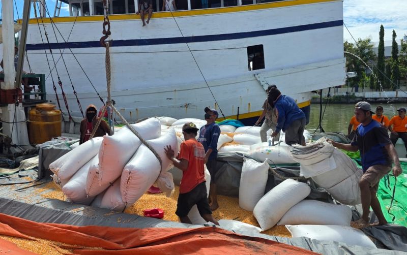 Upaya distribusi jagung dilakukan secara bertahap melalui jalur laut dan darat. Pengiriman jagung tahap kedua sebanyak 240 ton telah sandar di Pelabuhan Kalimas Surabaya pada Kamis (29/5).