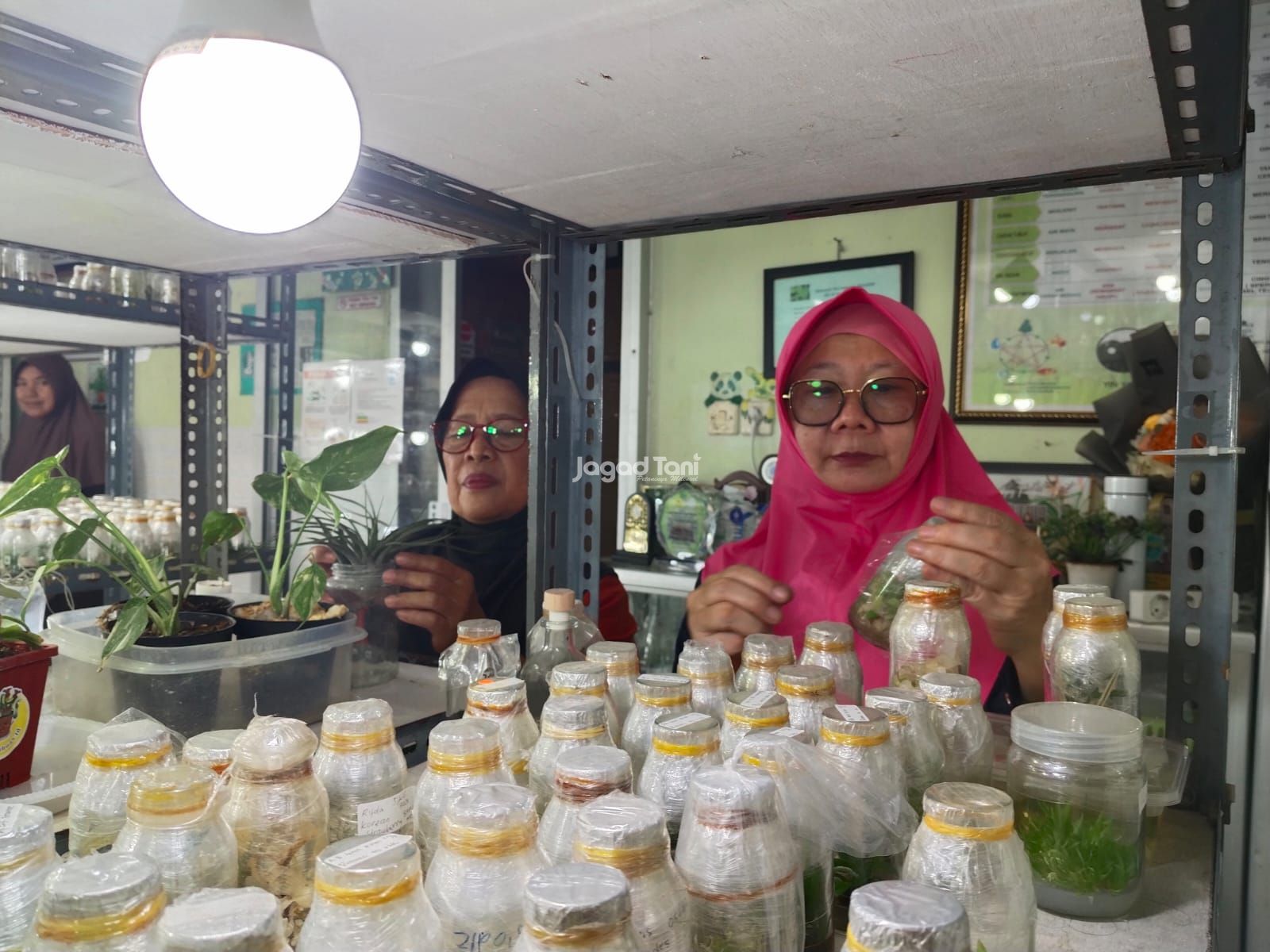 "Anggota KWT sedang menutup botol kultur jaringan (Foto: Jagad Tani/Rahmat Iskandar Rizki)"