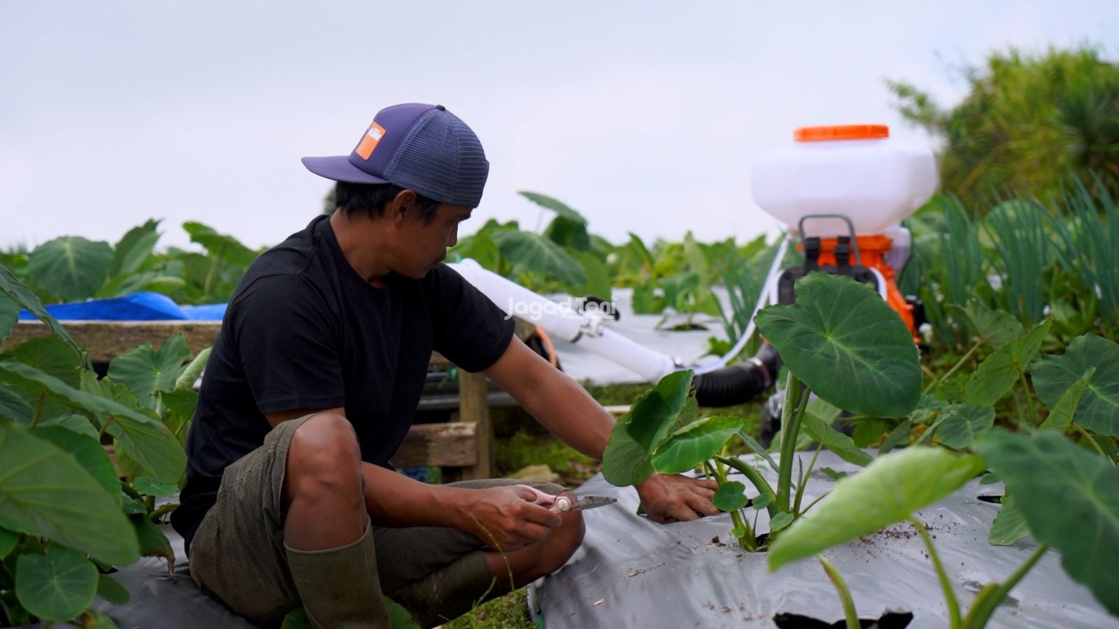 "Isan sedang melakukan perawatan dan pengecekan rutinan untuk memastikan tanaman dalam kondisi sehat. (Foto: Jagad Tani/Andika Dwinata)"