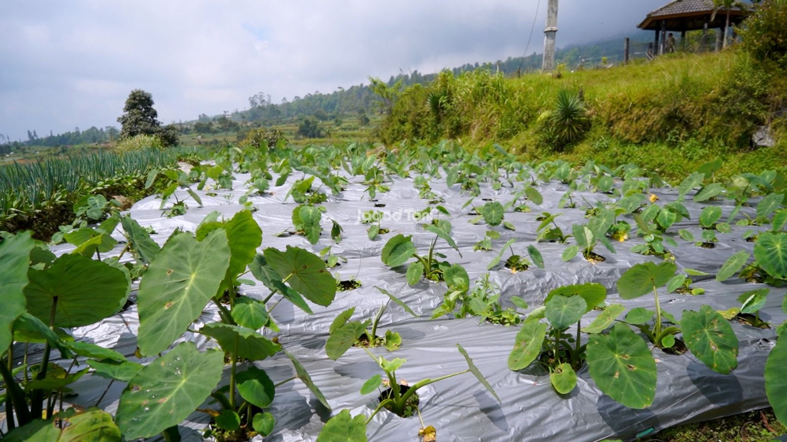 "Lokasi tempat Isan biasa menggarap berbagai jenis sayuran dan talas, di lereng kaki Gunung Gede-Pangrango, di desa Sukatani, Kecamatan Pacet, Kabupaten Cianjur, Jawa Barat. (Foto: Jagad Tani/Andika Dwinata)"